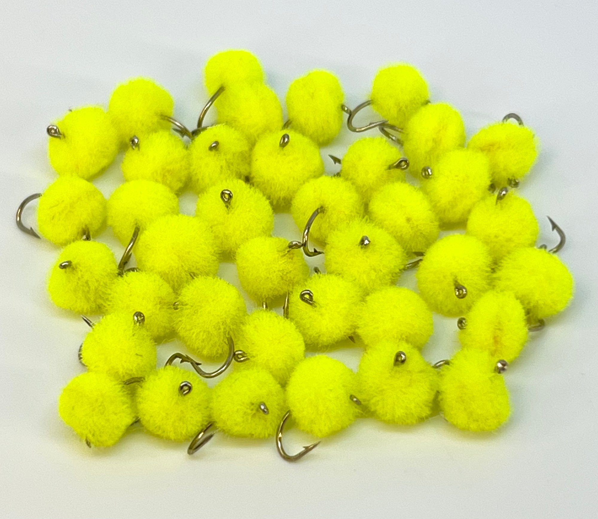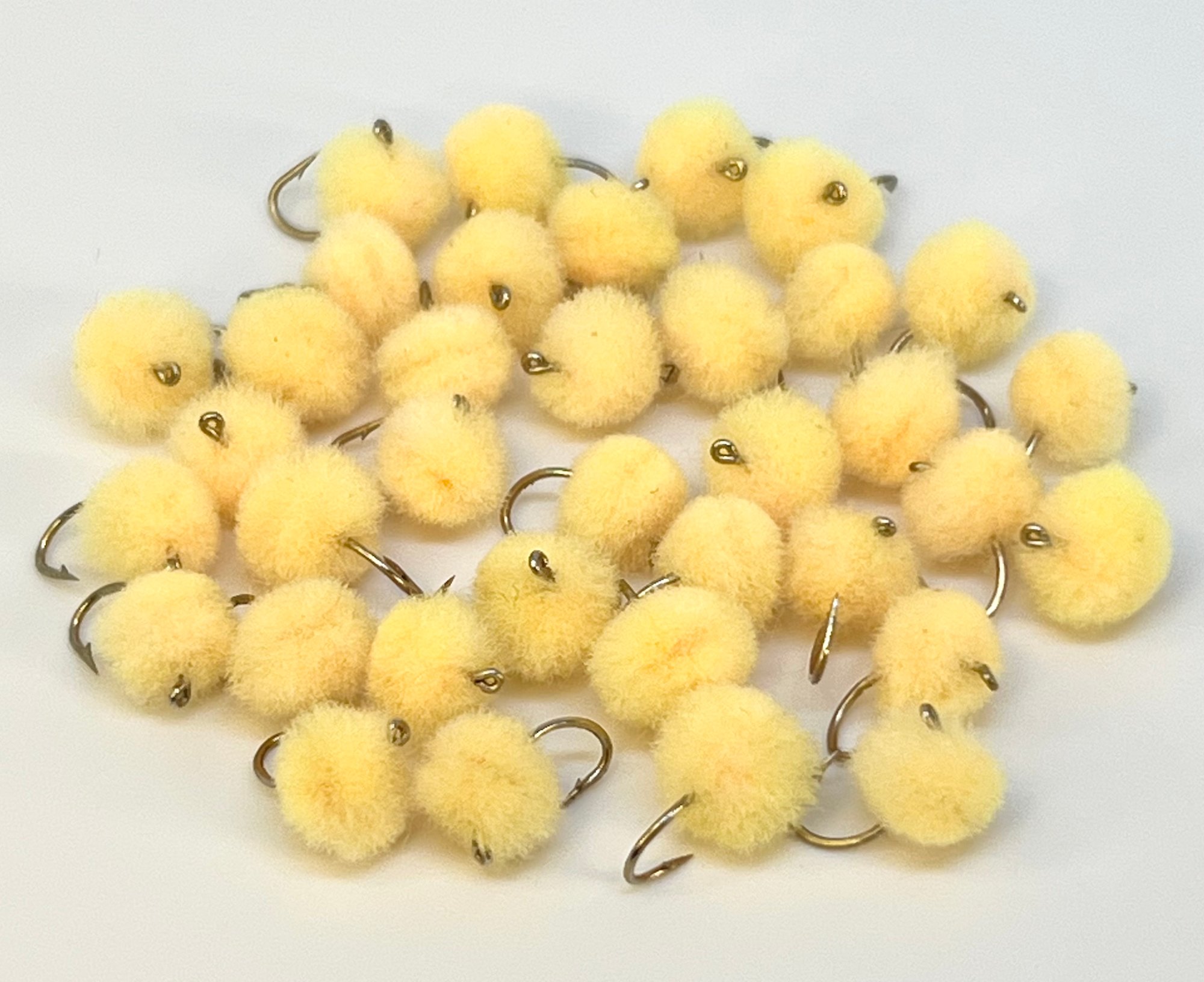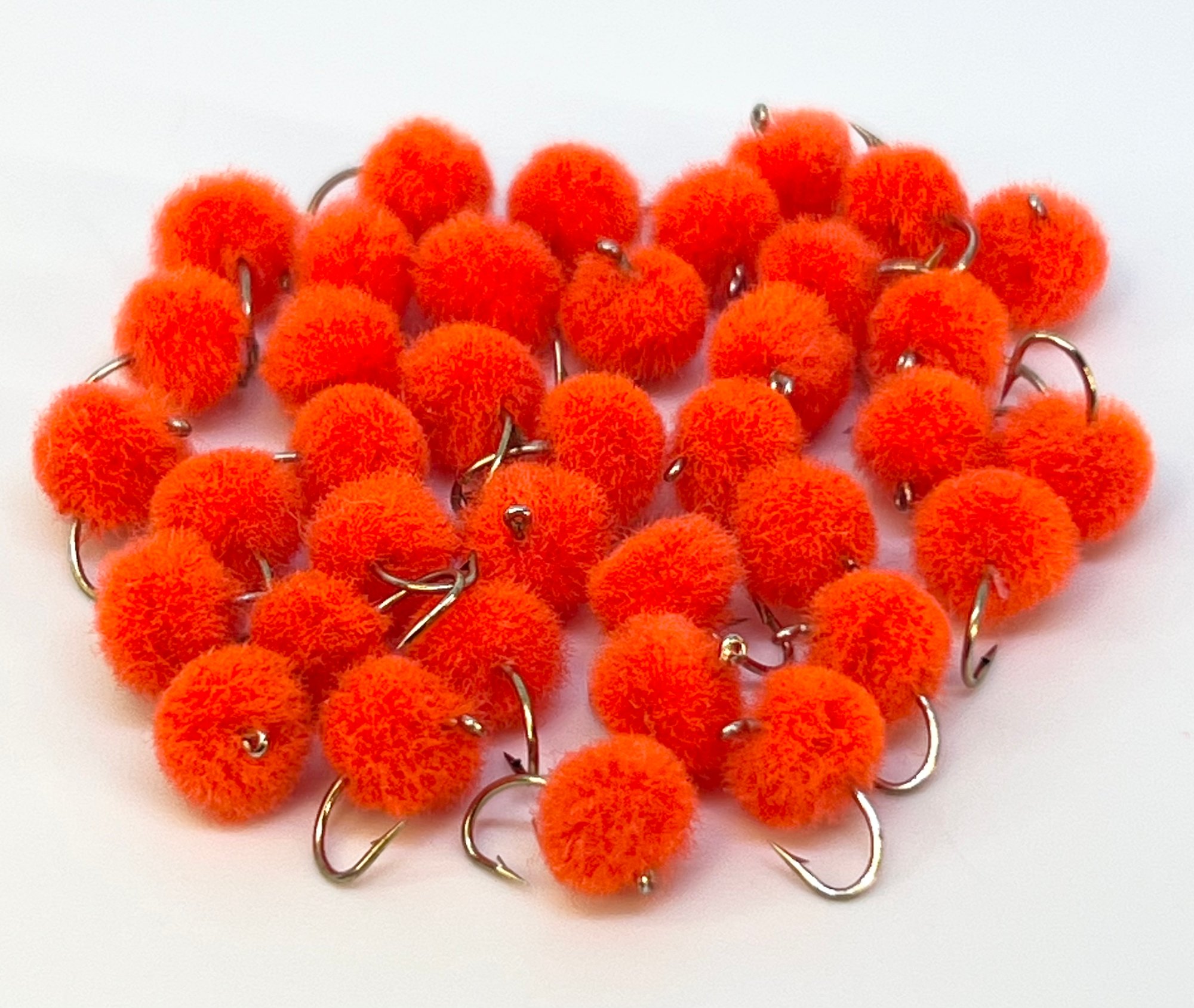 Simple but deadly egg pattern for Steelhead, Salmon & Trout! Available in 4 different colors & 2 sizes. Tied on a barbed Salmon Egg hook.
